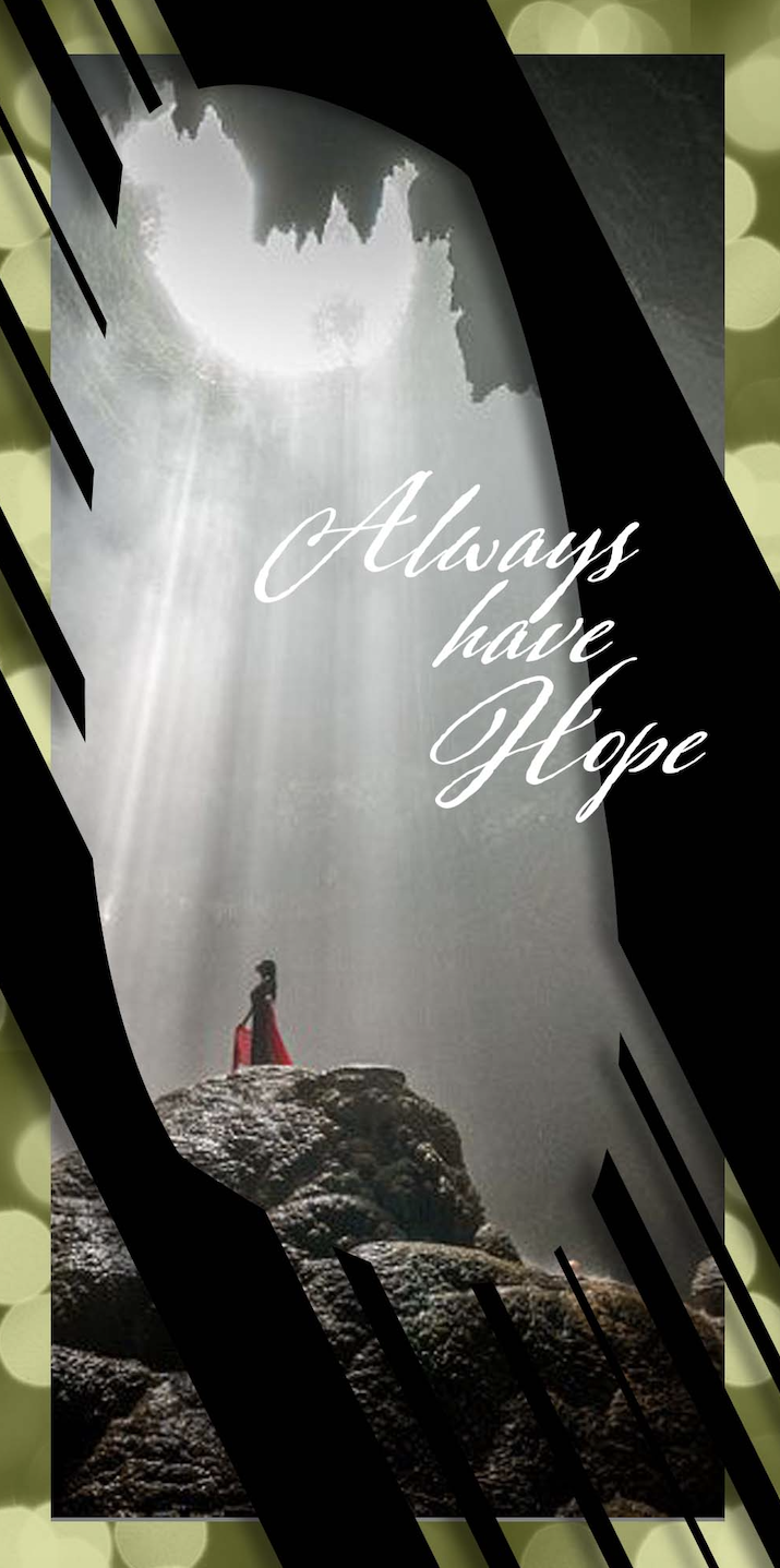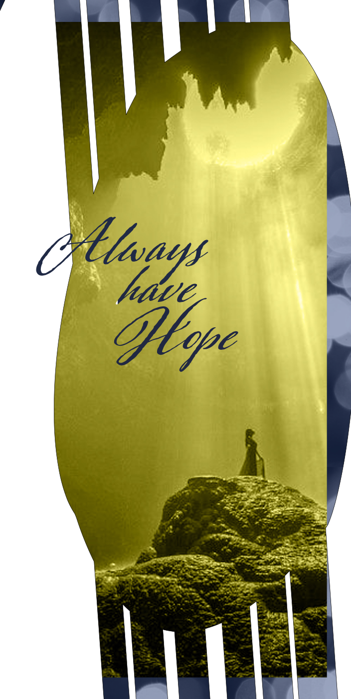 For this project I based the design on the quote “Always have Hope”. The target audience is people who loss hope at times in their life and need a reminder to have hope. For the layout I had the overall image of a person in a dark hole and they are looking up at the light which represents hope while they are in a dark situation. I emphasized the light by changing the hue and to express the feeling of hope. Also, adding illustrations and a frame to tell the audience what they should be focusing on. The colors and fonts express the feeling of hope and completes the design.