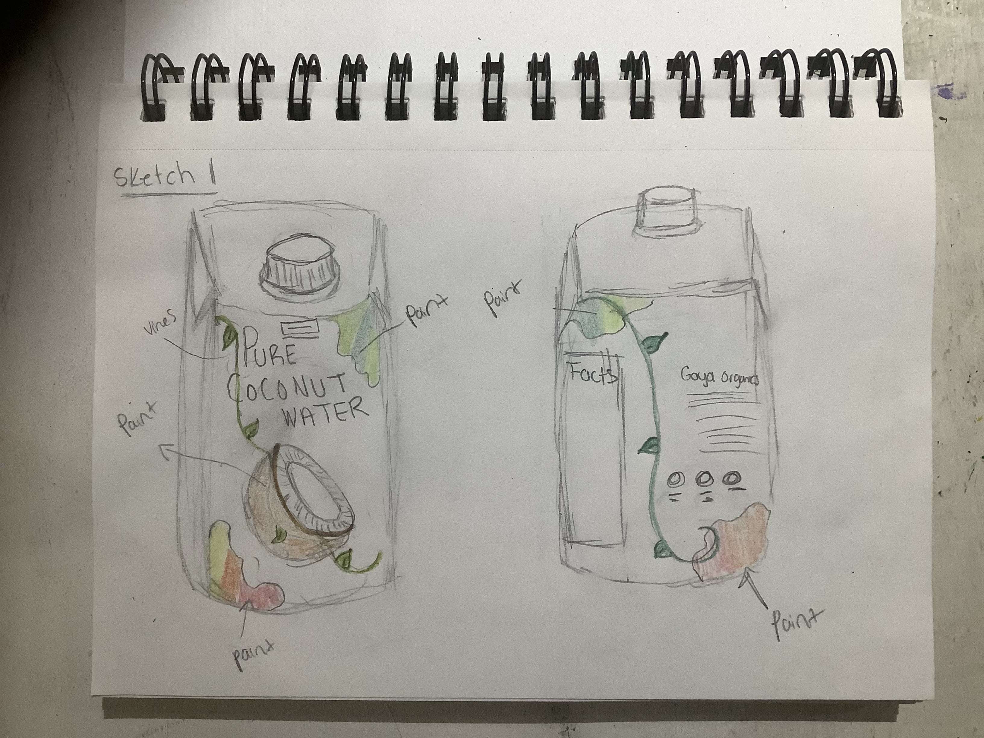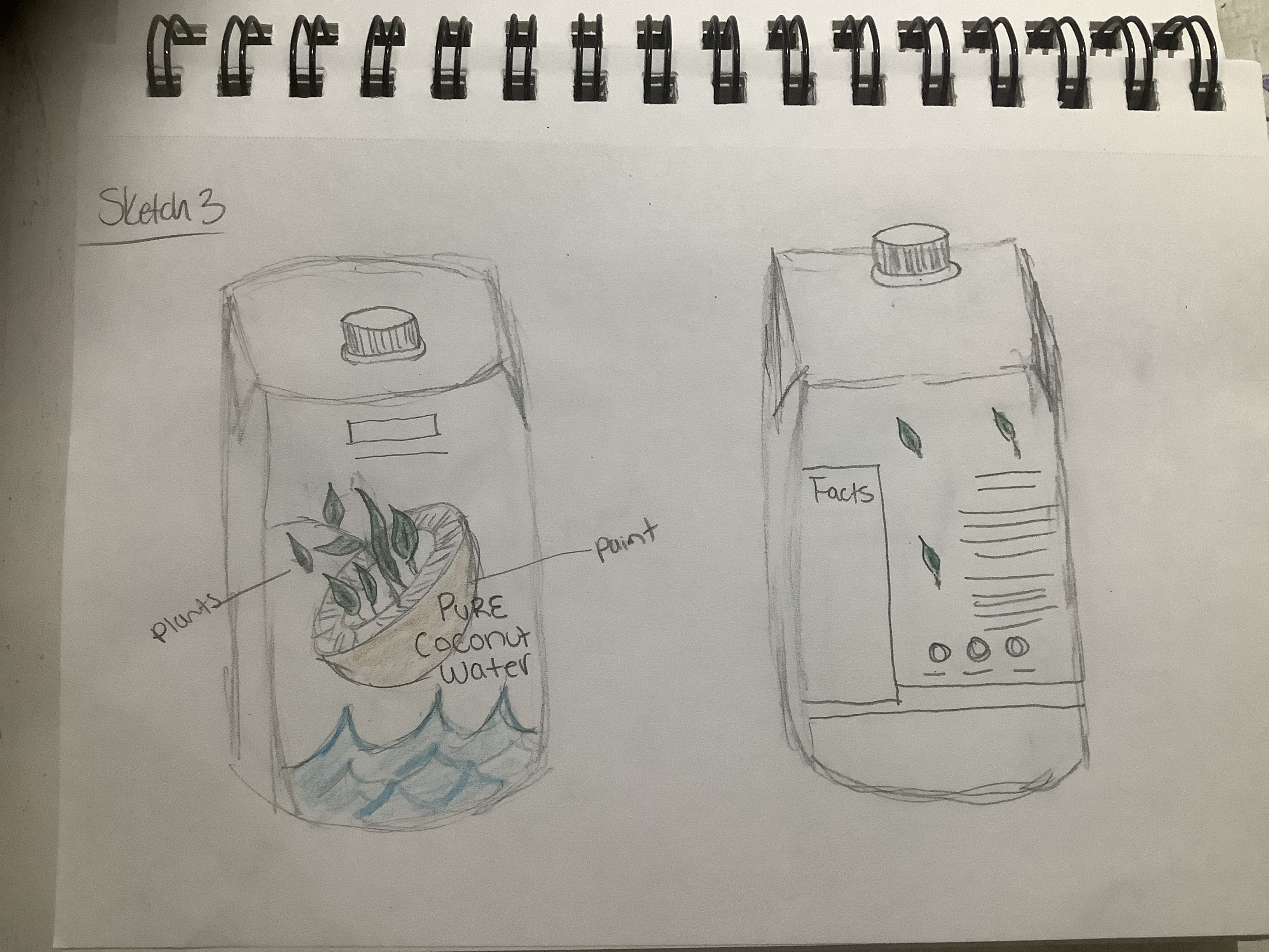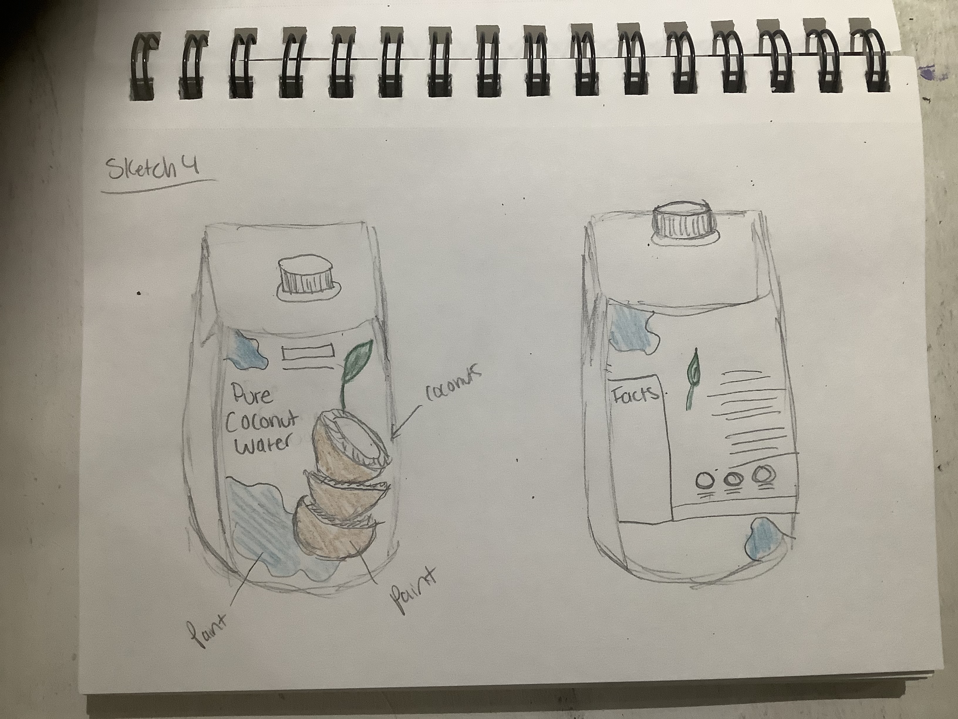 For this project I redesigned a product that already exists called Pure Coconut Water. My target audience I focused on is everyone who enjoys drinking Pure Coconut Water. For this redesign I focused on the coconut itself and where it grows from like coconut trees. I used blue and green paint on actual white paper then I took images of the texture of the brush strokes on the paper and inserted it on illustrator to capture it on the design through the palm trees and the curved water coming out of the coconut. Also, my choices of fonts are really simple and natural on the illustrations.